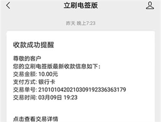 接收到電簽版收款成功提醒!